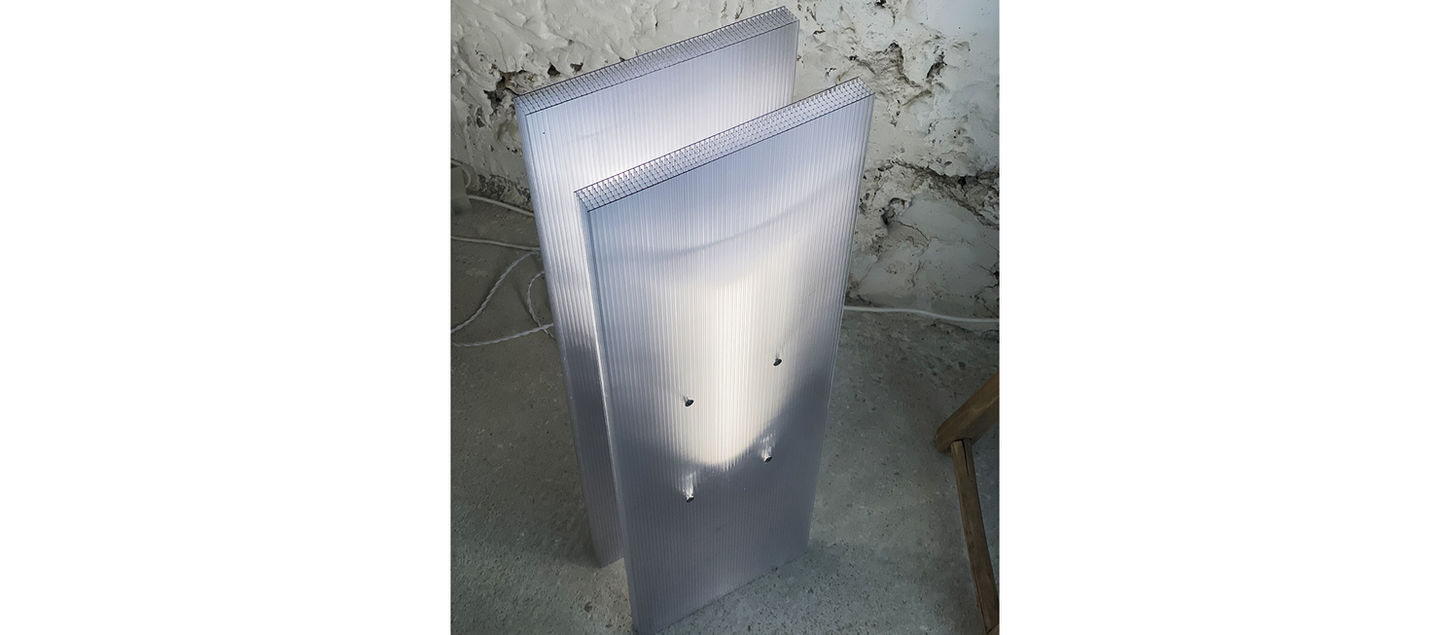 Resculpting fragments of building materials, BOA composes pieces that celebrate the pure, infinite brilliance of light - sensitive forms that are naturally anchored in the vibrant landscape of light and shadow. As if carried by the wind, these fragments have found refuge in the gallery space, draped in a nocturnal veil to welcome them. Each lamp reveals its own particular hue, reflecting the moment in time when it was detached from the original totem pole.